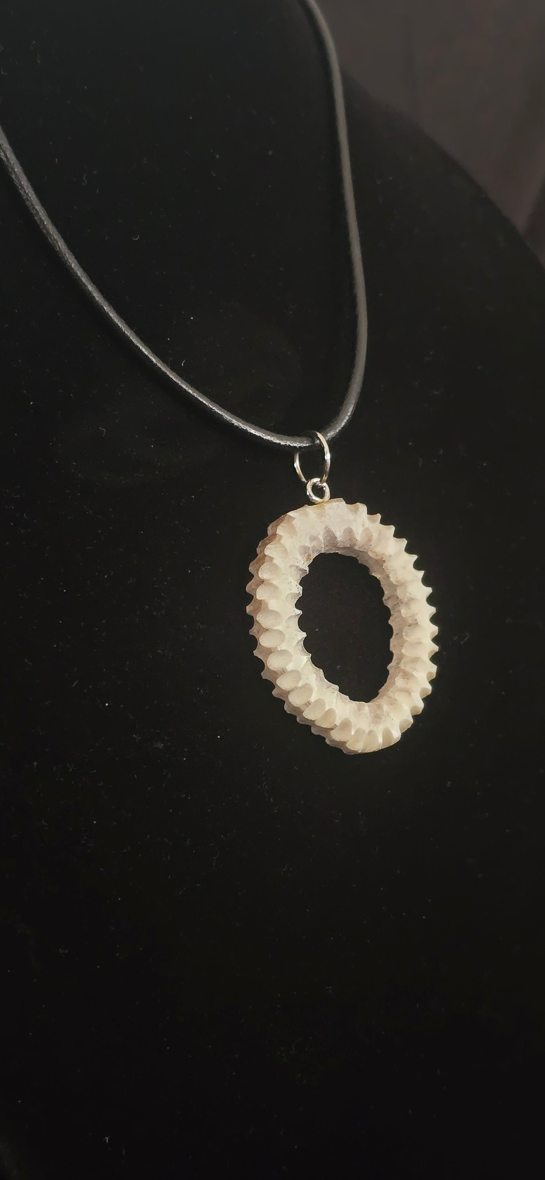 Elevate your style with this hand-carved antler necklace. The intricately decorated hoop adds a unique touch, making it a perfect statement piece. Wear it to showcase your individuality and connect with nature in a meaningful way. Embrace this beautiful reminder of craftsmanship and authenticity.