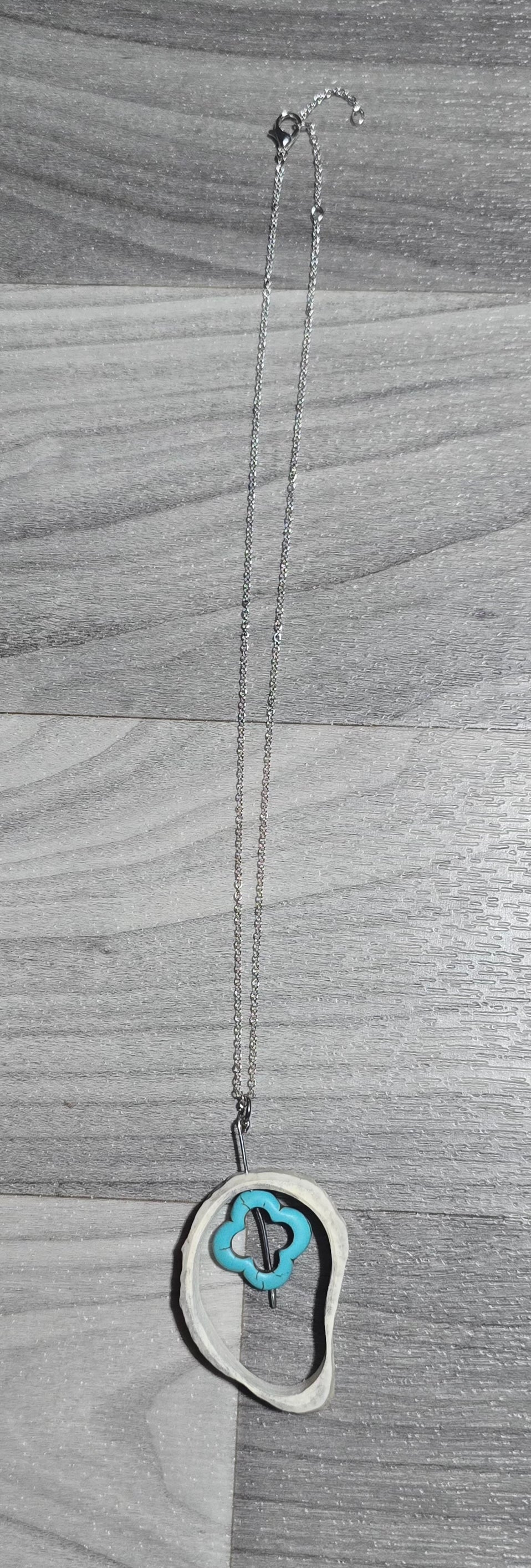 Antler necklace with turquoise accent hanging in the middle. Sterling standard Chain